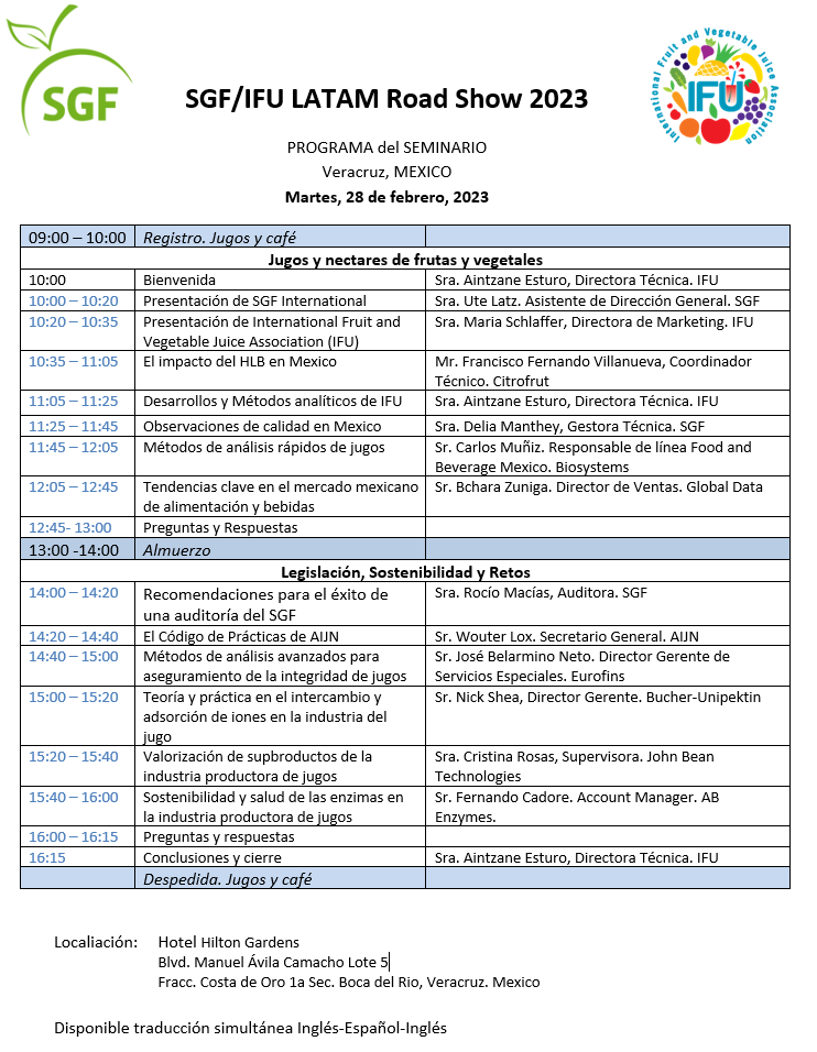 The objective of the Global Juice Roadshow is to get engaged with local juice producers and supporting companies. Meeting the IFU and SGF experts, juice colleagues and supplying industry within the region without travel costs is a huge benefit for our members and interested parties.